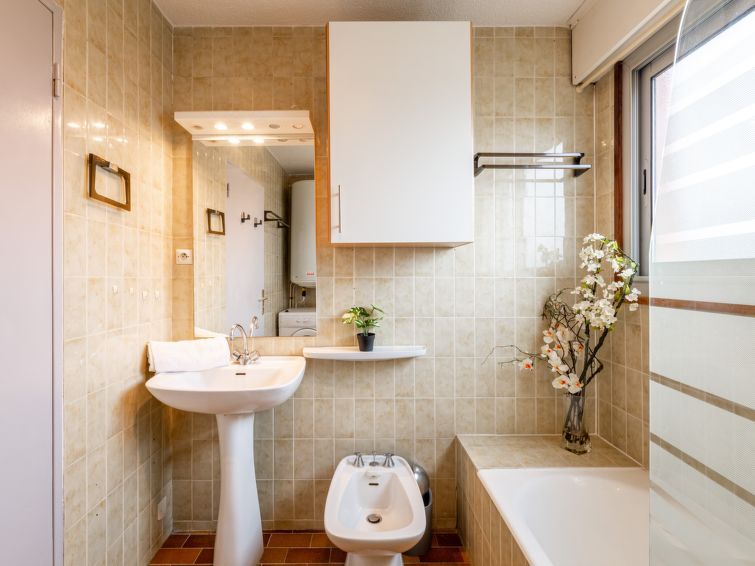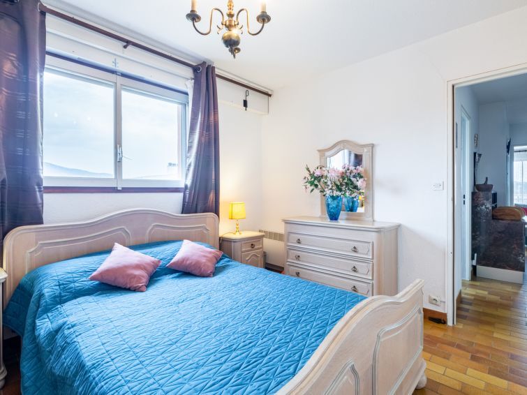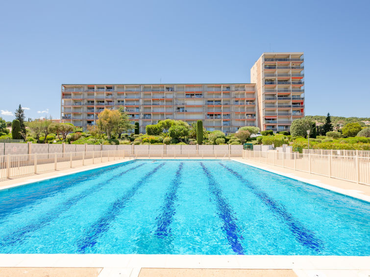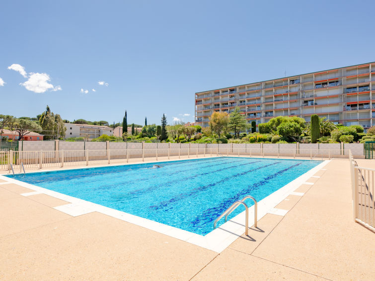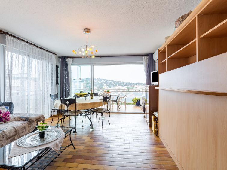 2-Zimmer-Wohnung 50 m2 im 4. Stock, Südostlage. Einfach und rustikal eingerichtet: Wohn-/Esszimmer mit 1 Doppelwandschrankbett (1 x 140 cm, Länge 190 cm), TV und Klimaanlage. Ausgang zur Terrasse. 1 Zimmer mit 1 Bett (140 cm, Länge 190 cm). Kochnische (Geschirrspüler, 1 Glaskeramikplatte, 4 Flammen, Toaster, Wasserkocher, Mikrowelle, Tiefkühler, elektrische Kaffeemaschine). Bad/WC. E-Heizung. Terrasse 10 m2. Terrassenmöbel. Sicht auf das Meer, das Schwimmbad und den Garten. Zur Verfügung: Waschmaschine. Internet (Wireless LAN, gratis). Parkplatz. Bitte beachten: Nichtraucher-Unterkunft. 1 kleines Haustier/Hund erlaubt. Rauchmelder. Inserat einer Privatperson nach Artikel 155, IV, CGI. 83115003222AK