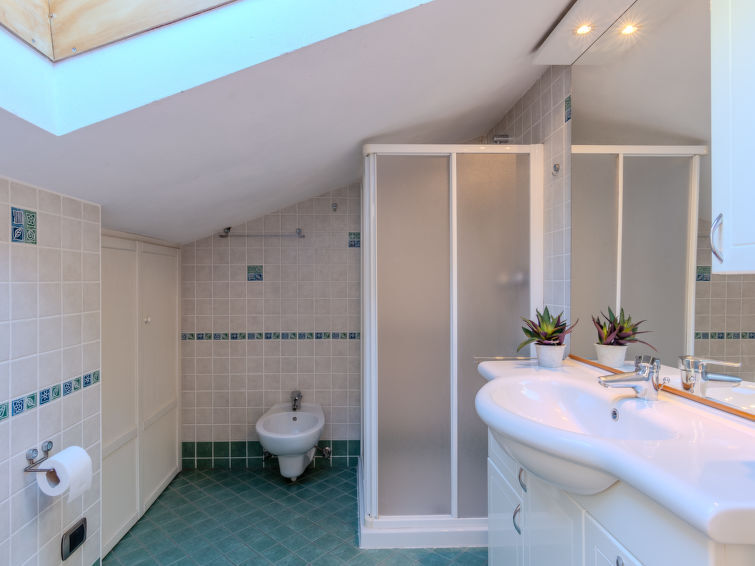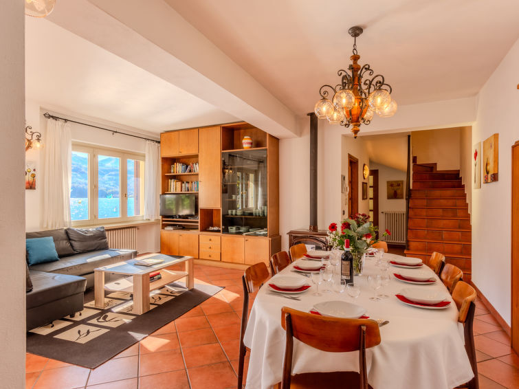 Maison jumelée 4 pièces 150 m2 sur 3 niveaux. Spacieux et clair, partiellement mansardée, aménagement agréable et de bon goût: séjour/salle à manger avec cheminée (uniquement à titre de décoration), table pour les repas et TV (satellite) (écran plat). Sortie sur le jardin, sur la terrasse. 1 chambre double. Cuisine ouverte (four, lave-vaisselle, Poêle à gaz, 4 feux, grille-pain, bouilloire électrique, micro-ondes, congélateur). Bain/bidet/WC. À l'étage supérieur: 1 chambre double. Sortie sur le balcon. 2ème étage: Studio mansardé avec 2 lits, 1 lit double et table pour les repas. Douche/bidet/WC. Chauffage au gaz. Possibilité de chauffage uniquement du 15.10. au 15.04. Sol en pierres naturelles. Balcon, grande terrasse couverte, jardin. Meubles de terrasse, mobilier de balcon, chaises longues (4). Superbe vue panoramique sur le lac et les montagnes. A disposition: lave-linge, fer à repasser, chaise haute pour enfant, lit bébé jusqu'à 2 ans. Internet (Connexion WIFI, gratuit). Veuillez noter: maison non-fumeur. IT013189C2MAFXHAB5
