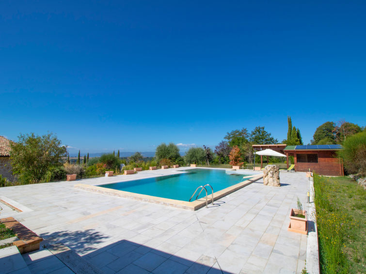 Belle villa confortable, individuelle "La Danza", 350 m au dessus du niveau de la mer, environnée par les arbres et champs. À 3 km du centre de Massa Martana, à 17 km du centre de Todi, situation ensoleillée. A usage privé: parc 2 ha (clôturé), jardin propice à la détente, piscine (14 x 7 m, profondeur 140 - 250 cm, disponibilité saisonnière: 01.Mai. - 30.Sep.) avec marches intérieures. Douche/WC dans l'espace piscine, meubles de jardin, barbecue. Infrastructures de la Maison: air-conditionné. Place de parking près de la maison. Supermarché 3 km, restaurant 3 km, bar 3 km, baignade en lac "Trasimeno" 60 km. Attractions à proximité: Bevagna 24 km, Spello 30 km, Spoleto 34 km, Assisi 40 km, Perugia 50 km, Orvieto 52 km. Veuillez noter: voiture recommandée. Le propriétaire n'accepte pas les groupes de jeunes. Résidence avec portail électrique.