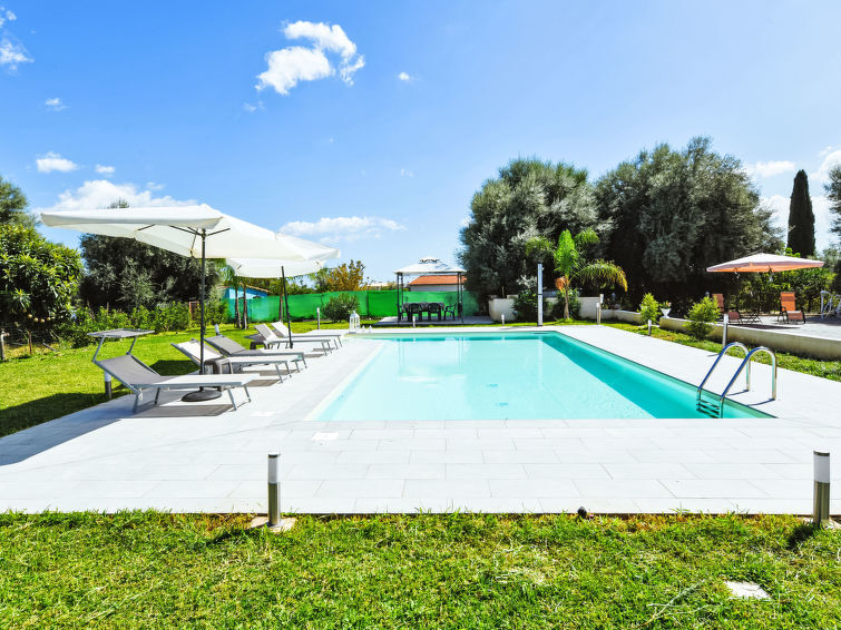 Villa 4-kamers 150 m2, op de begane grond. Comfortabel en mooi ingericht: woon-/eetkamer met open haard en Sat-TV. 1 2-pers. kamer met air-conditioning. 2 kamers, elke kamer heeft 2 bedden en air-conditioning. Woonkeuken (oven, afwasmachine, Gasfornuis, 4 kookpitten (vlammen), broodrooster, magnetron) met eettafel. Uitgang naar het terras. Douche/bidet/WC. Verwarming. Geen verwarmingsmogelijkheid. Terras 70 m2, overdekt, prieel 9 m2. Terrasmeubelen, barbecue, ligstoelen (5). Uitzicht op het zwembad en de tuin. Ter beschikking: wasmachine, strijkijzer, kinderstoel, kinderbed tot 2 jaar (extra), haardroger. Internet (Internet (WiFi), gratis). Parkeerplaats (1 Auto) op 10 m. Rookmelders, brandblusser. IT089009C2O832FGDA
