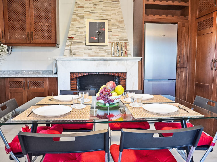 Huis 5-kamers 180 m2 op 2 verdiepingen. Licht, comfortabel en smaakvol ingericht: woon-/eetkamer met open haard, eettafel, bibliotheek, Digitale TV en air-conditioning. 1 groot kamer met 1 2-pers bed en ventilator. 1 kamer met 2 bedden en ventilator. 1 kamer met 1 2-pers bed en ventilator. 1 kamer met 2 uitschuifbare bedden (2 pers.), ventilator. Groot keuken (oven, afwasmachine, 4 keramische glas kookplaten, broodrooster, waterkoker, magnetron, diepvriezer, elektrische koffiemachine) met open haard, eettafel en air-conditioning. Bad/WC, douche/WC. Air-conditioning. Groot terras. Terrasmeubelen, barbecue, zitgelegenheid. Zeer mooi uitzicht op de bergen, het dal en de plaats. Ter beschikking: wasmachine, strijkijzer, kinderstoel, kinderbed tot 2 jaar, haardroger, haardhout (gratis). Internet (WiFi, gratis). Geschikt voor families. VTAR/CO/00293