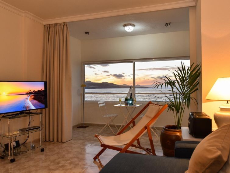 "LZ84H Lanzarote", appartement 2-kamers 70 m2 op de 4e verdieping. Gezellig ingericht: woon-/eetkamer met eettafel en Digitale TV. 1 kamer met 2 bedden. Keuken (oven, afwasmachine, 3 keramische glas kookplaten, broodrooster, waterkoker, magnetron, diepvriezer, elektrische koffiemachine) met eettafel. Douche/bidet/WC. Uitzicht op zee en het landschap. Ter beschikking: wasmachine, kluis, strijkijzer, kinderstoel, kinderbed tot 2 jaar, haardroger. Internet (WiFi, gratis). Garage (1 Auto). Niet rokers woning. 2016/1473 // Reg. Nr.: ESFCTU000035010000355600000000000000000VV-35100017329