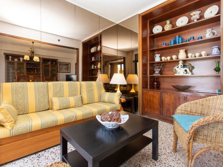 "Tamariu", appartement 4-kamers 94 m2 op de 2e verdieping. Doelmatig ingericht: woon-/eetkamer met eettafel, TV en Digitale TV (Flatscreen TV). Uitgang naar het balkon. 1 kamer met 1 2-pers bed (135 cm). 1 kamer met 2 bedden (90 cm). 1 kamer met 1 kastbed (90 cm). Kleine keuken (4-pits kookplaat, magnetron, elektrische koffiemachine). Bad/bidet/WC, aparte WC. Geen verwarmingsmogelijkheid. Klein balkon. Terrasmeubelen. Mooi uitzicht op zee, de bergen en de plaats. Ter beschikking: wasmachine, strijkijzer. Geen lift. HUTG034908
