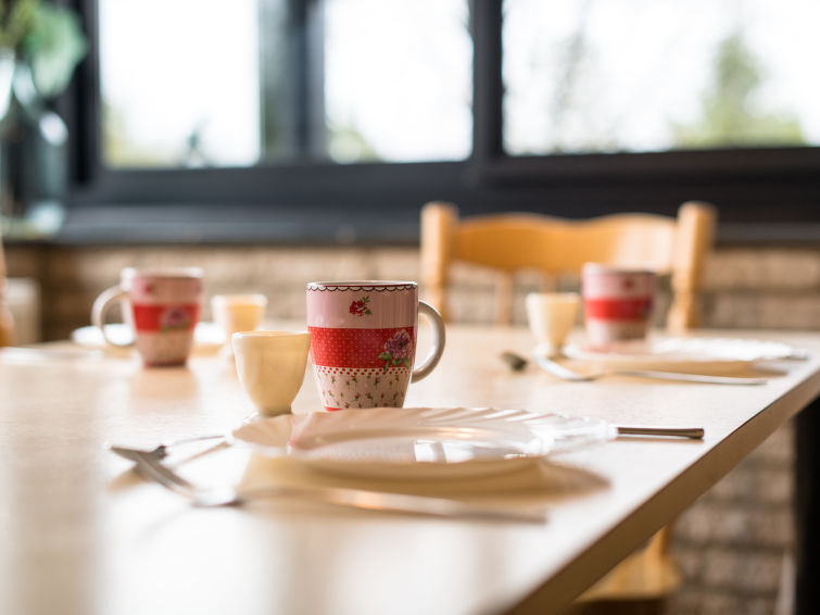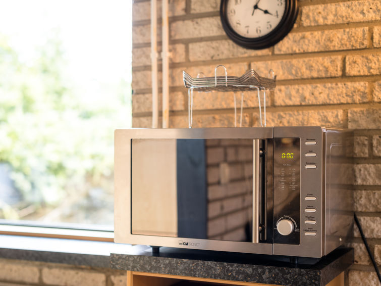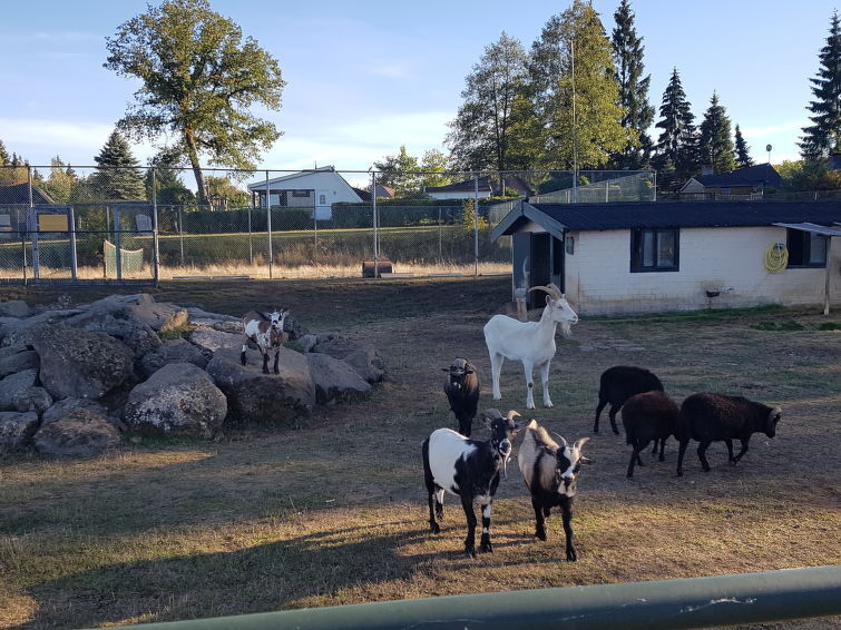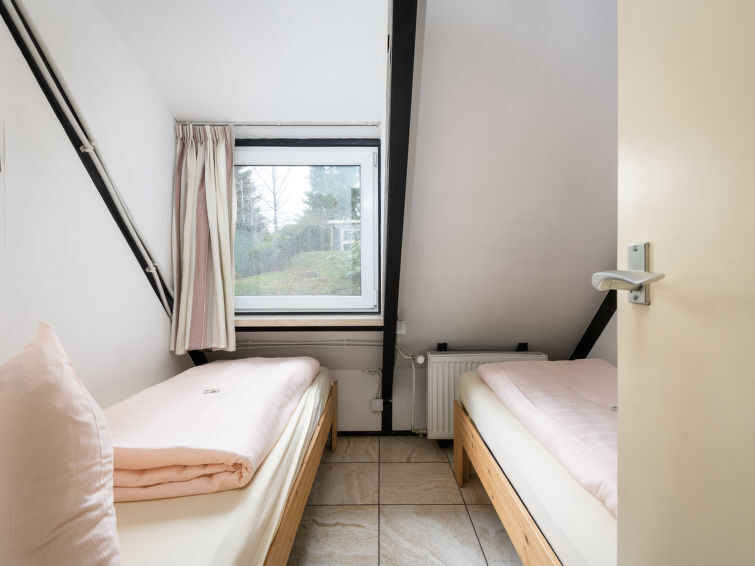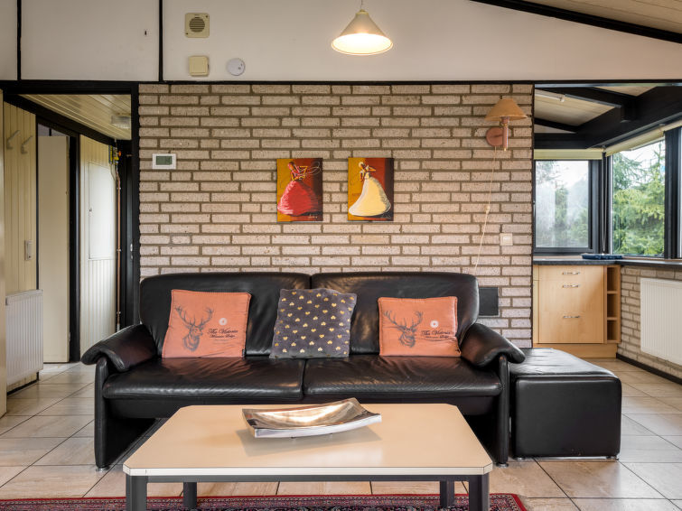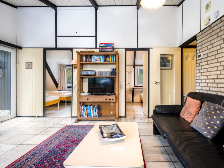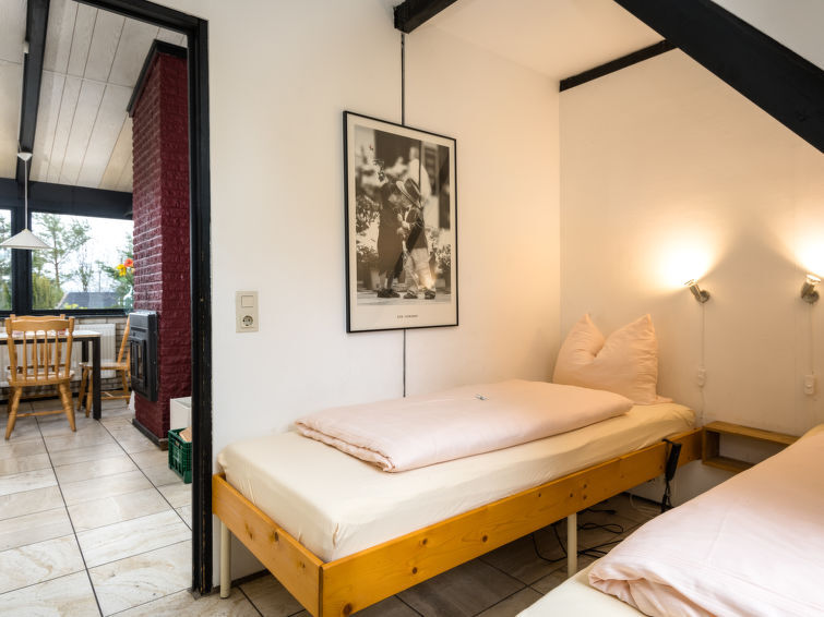"Haus 11", bungalow 4-kamers 60 m2. Gedeeltelijk afgeschuinde daken, gezellig ingericht: woon-/eetkamer 30 m2 met Sat-TV (Flatscreen TV). Uitgang naar het terras. 1 kamer 9 m2 met 1 2-pers bed (160 cm, lengte 190 cm). 2 kamers 6 m2, elke kamer heeft 2 bedden (80 cm, lengte 190 cm). Kookhoek 5 m2 (4-pits kookplaat, oven, afwasmachine, magnetron, elektrische koffiemachine). Douche/WC. Elektrische verwarming. Terras 30 m2 gedeeltelijk overdekt. Terrasmeubelen. Ter beschikking: kinderbed (extra), haardhout (extra). Rookvrij huis. Maximaal 2 huisdieren/honden toegestaan. Rookmelders, brandblusser.