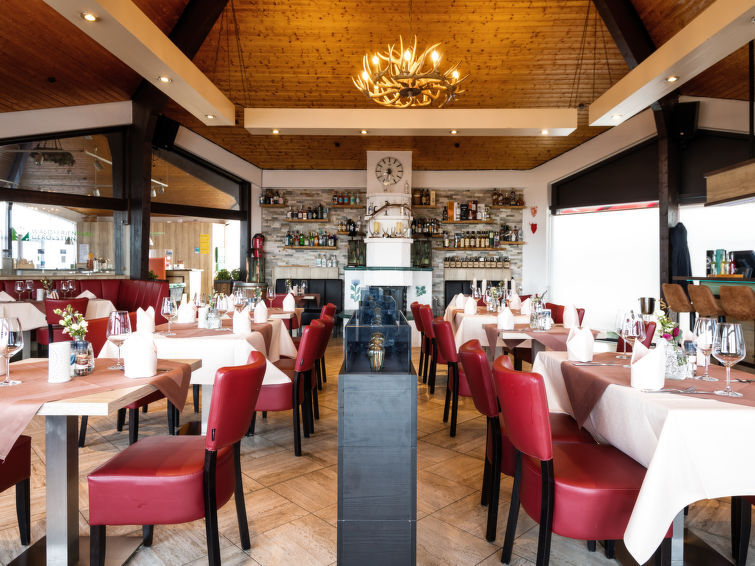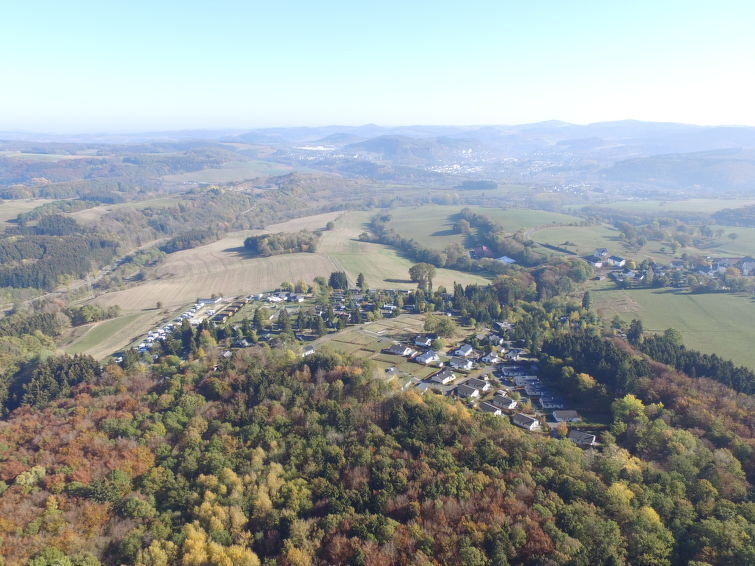 Vakantiecomplex "Waldferienpark Gerolstein". Buiten de plaats, 3 km van het centrum van Gerolstein, geïsoleerde, rustige ligging op een heuvel, 100 m van de bosrand, 24 km van het meer, 100 m van het beekje, te midden van groen. Voor medegebruik: overdekt zwembad verwarmd (70 m2, 130 cm diepte) met trap. Douche/WC bij het zwembad, kinderspeelplaats (glijbaan, schommel, zandbak), minidierentuin. Voor alleengebruik: tuin met gazon. In het complex: restaurant, bar, ontbijtruimte, salon, biljart, trampoline, zonneterras. Broodjesservice op verzoek (extra). Trappenweg naar het huis. Parkeerplaats op het terrein. Winkel 3 km, levensmiddelenwinkel 2.5 km, supermarkt 2.5 km, winkelcentrum 3 km, fietsverhuur 6 km, bushalte "Gerolstein" 3 km, treinstation "Gerolstein" 3 km, openluchtzwembad 3 km, meer (zwemmen) 3.2 km. Golfterrein (18 holes) 18 km, tennis 3 km, midgetgolf 50 m, manege 4 km, wandelroutes 50 m vanaf het huis. Attracties in de buurt: Kylltal, Burg Eltz. Bekende meren kunnen gemakkelijk worden bereikt: Pulvermaar 24 km. Auto noodzakelijk.