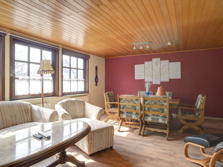 "An der Dorfkirche", appartement 4-kamers 110 m2, op de begane grond. Comfortabel en antiek ingericht: woonkamer 28 m2 met zwedenkachel. Woon-/eetkamer 26 m2 met Sat-TV (Flatscreen TV). 2 kamers 16 m2, elke kamer heeft 1 2-pers bed (180 cm, lengte 200 cm). Keuken 12 m2 (oven, afwasmachine, 4 keramische glas kookplaten, magnetron, elektrische koffiemachine). Bad/douche/bidet/WC, hydro massage bad. Ter beschikking: haardhout (extra). Internet (Internet (WiFi), gratis). Niet rokers woning. Maximaal 1 huisdier/hond toegestaan. Rookmelders.