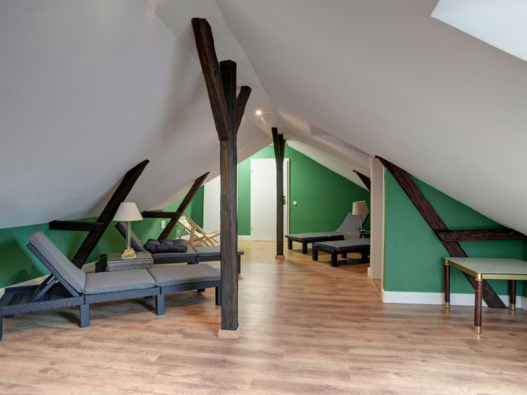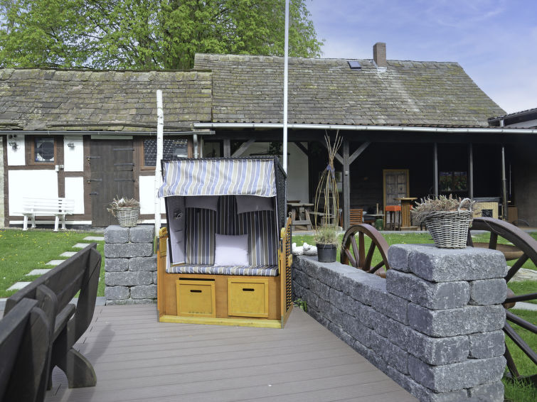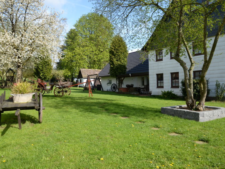 Mooi, historisch boerderijtje van 3 verdiepingen, uit de 19e eeuw, gerenoveerd in 2019, omgeven door bomen en weiden. In de wijk Hohe, 5.3 km van het centrum van Hehlen, 5 km van het centrum van Bodenwerder, rustige ligging, 400 m van de bosrand. Voor medegebruik: groot tuin 1.500 m2 (omheind) met gazon en bomen. Terras (20 m2), tuinmeubelen, barbecue, kinderspeelplaats (glijbaan, schommel). In het complex: fitnessruimte (extra). Bergruimte voor fietsen, centrale verwarming, wasmachine (voor medegebruik, extra), droogruimte. Parkeerplaats (voor 10 auto's) op het terrein, eigen garage (extra) bij het huis. Winkel 7 km, levensmiddelenwinkel 5 km, supermarkt 7 km, restaurant 5 km, bakkerij 5 km, bushalte "Hohe" 20 m, veerboot "Hehlen" 8 km, openluchtzwembad 8 km, overdekt zwembad 9 km. Wandelroutes 200 m vanaf het huis. Attracties in de buurt: Welterbe Corvey 33 km, Porzellanmanufaktur Fürstenberg 40 km. Bekende meren kunnen gemakkelijk worden bereikt: Humboldtsee 28 km. Auto noodzakelijk. De eigenaar accepteert geen jeugdgroepen. Zitgedeelte tuin (200 m2) en het tweede terras (9 m2) zijn beschikbaar voor gezamenlijk gebruik (beide terrassen zijn niet zichtbaar voor elkaar). Fins stoombad (beschikbaar 01.04.-30.11.) voor gezamenlijk gebruik.
