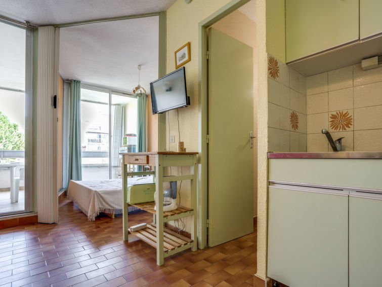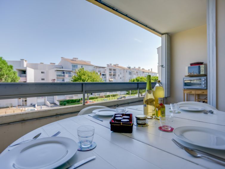 Residentie "Floralies I". In de wijk le Palais de la Mer, 450 m van zee, 400 m van het strand. Parkeerplaats. Winkel, supermarkt 50 m, winkelcentrum 300 m, restaurant 50 m, bushalte "California" 450 m, treinstation 1.5 km, zandstrand 400 m, overdekt zwembad 1.1 km, thermaalbad "Thalazur Les Bains de Camargue" 4 km. Manege 2.5 km. Attracties in de buurt: Seaquarium 350 m, Casino Flamingo 800 m, Aigues-Mortes 8 km, La Grande-Motte 13 km, Les Saintes-Maries-de-la-Mer 37 km, Nîmes 52 km. Wandelgebied Réserve Naturelle de Camargue. Vliegveld 25 km van het huis.