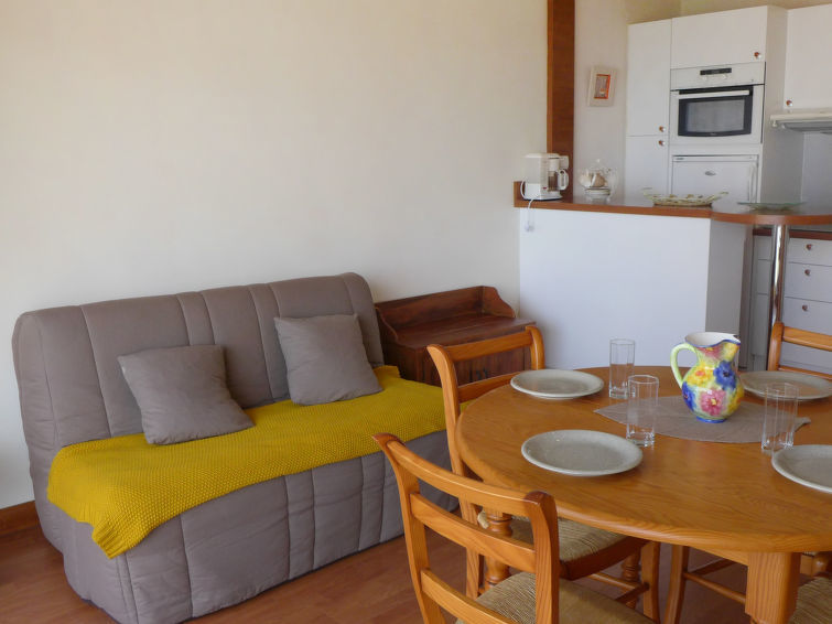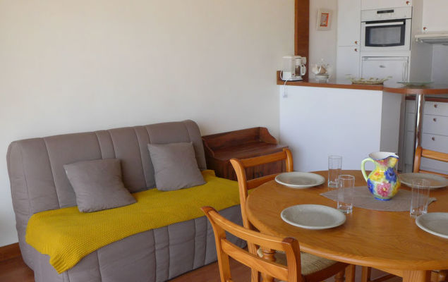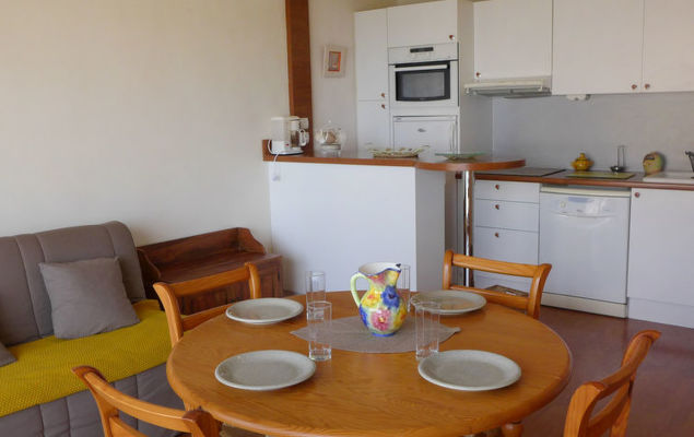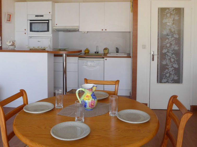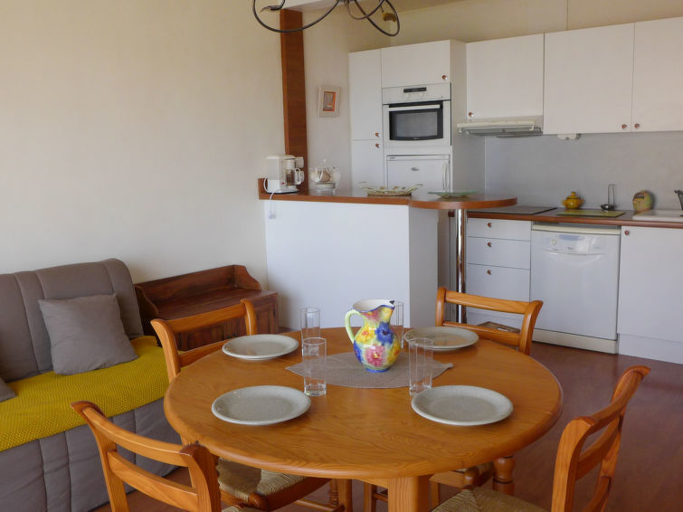 Appartement 2-kamers 43 m2 op de 2e verdieping, op het noorden gelegen. Woon-/eetkamer met 1 2-pers divanbed (140 cm, lengte 190 cm), TV (Flatscreen TV). Uitgang naar het balkon. 1 kamer met 1 2-pers bed (140 cm, lengte 190 cm), elektrische rolluiken. Uitgang naar het balkon. Open keuken (afwasmachine, 3 keramische glas kookplaten, broodrooster, waterkoker, elektrische koffiemachine, combimagnetron) met bar. Douche/WC. Parketvloeren. Balkon 3 m2, balkon 5 m2. Ligstoelen (2). Uitzicht op zee. Ter beschikking: wasmachine, strijkijzer. Internet (Internet (WiFi), extra). Let op: rookmelders.