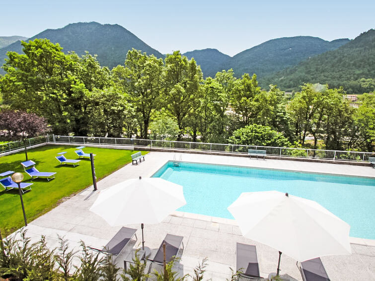 Mooi, comfortabele residentie "Elettra", 380 m boven zeeniveau. 12 appartementen in de woning. In het gehucht Pieve Vecchia, 1 km van het centrum van Idro, rustige ligging, 500 m van het meer, 50 m van de rivier. Voor medegebruik: tuin met gazon en bomen, openluchtzwembad (14 x 7 m, 100 - 140 cm diepte, seizoensgebonden beschikbaarheid: 15.Mei. - 15.Sep.). Buitendouche, tuinmeubelen, grill. In het complex: internetaansluiting, Internet (WiFi), tafeltennis, tafelvoetbal, bergruimte voor fietsen, zonneterras, wasmachine (voor medegebruik). Luchthaventransfer (extra). Parkeerplaats bij het huis. Levensmiddelenwinkel, restaurant 50 m, bar, bushalte 100 m, rotsstrand 500 m, thermaalbad "Terme di Comano" 55 km. Bekende meren kunnen gemakkelijk worden bereikt: Lago di Garda 40 km, Lago di Ledro 40 km. De afgebeelde foto is slechts een voorbeeld. Vergelijkbare accommodaties kunnen worden geboekt.