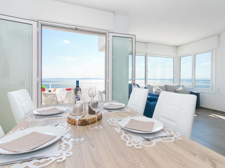 Huis 4-kamers 118 m2 op 2 verdiepingen, op het zuidwesten gelegen. Volledig gerenoveerd in 2019, modern en stijlvol ingericht: woon-/eetkamer met panoramavenster met 1 divanbed, eettafel, Digitale TV, Flatscreen TV, air-conditioning, heteluchtverwarming en elektrische rolluiken. Uitgang naar het terras, op het zuiden en op het westen. Keuken (afwasmachine, 3 inductiekookplaten, magnetron, diepvriezer, elektrische koffiemachine). Aparte WC. Souterrain: 1 kamer met 1 2-pers bed. Uitgang naar het terras, op het zuiden en op het westen. 1 kamer met 2 bedden. Uitgang naar het balkon. 1 kamer met 1 bed (110 cm, lengte 190 cm). Bad/WC. Klein terras 10 m2, op het zuiden gelegen en op het westen gelegen. Terrasmeubelen. Mooi panoramazicht op zee en het landschap. Ter beschikking: wasmachine. Internet (WiFi, gratis). Garage. TV alleen ES. HUTG028994